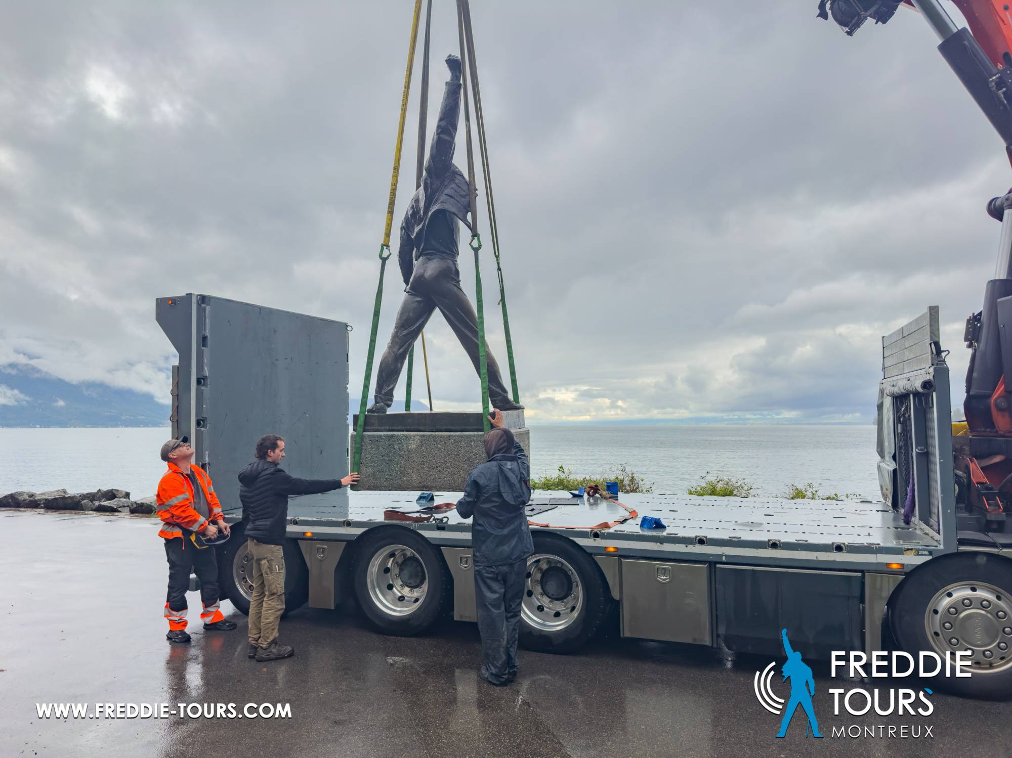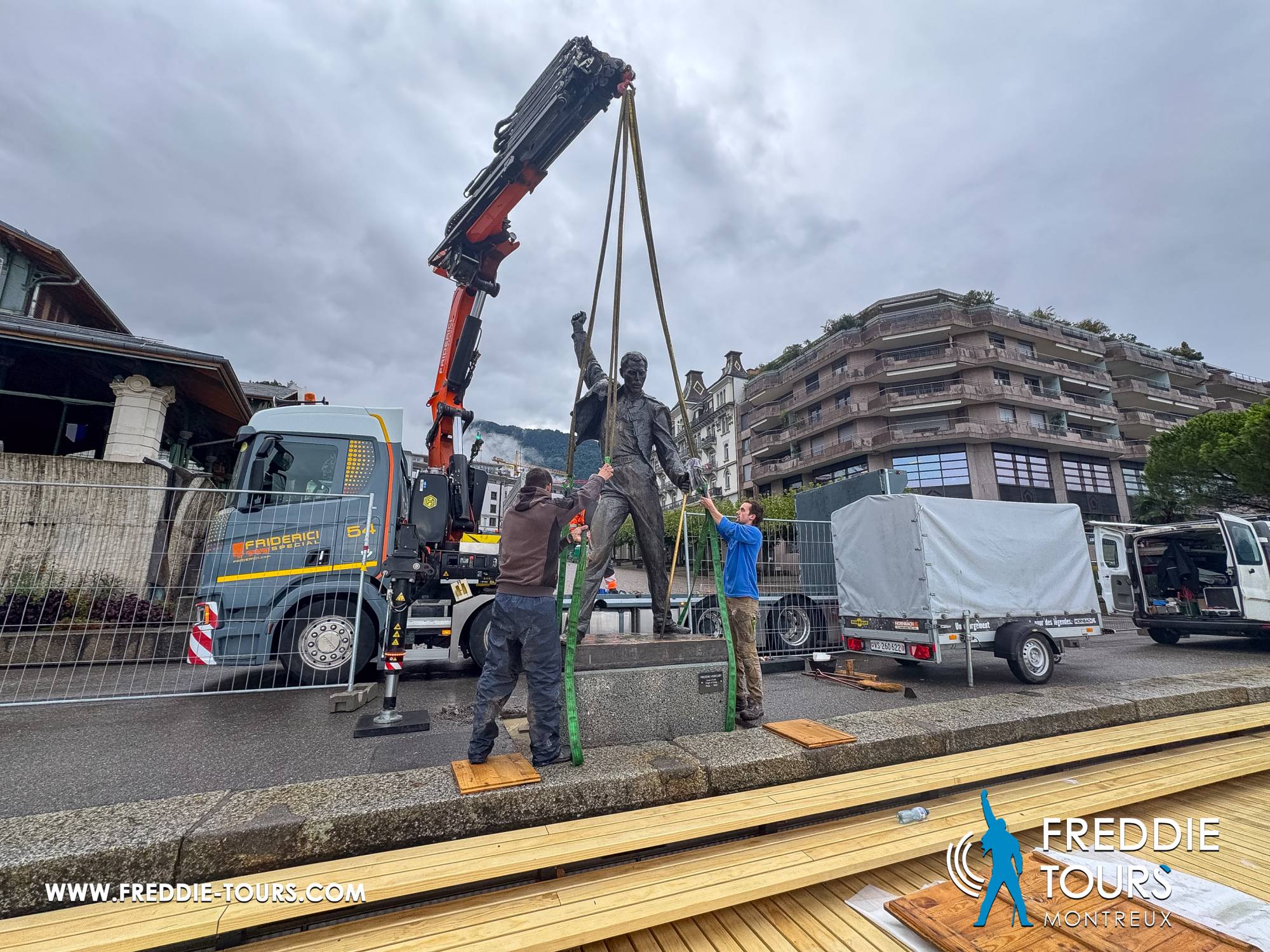 Rather than leaving the statue amid a construction site, the municipality decided to move it a few months earlier than originally planned. The relocation, initially scheduled during the Montreux Jazz Festival, was brought forward to facilitate the progress of the work and ensure visitors can continue to admire the statue in the best possible conditions.